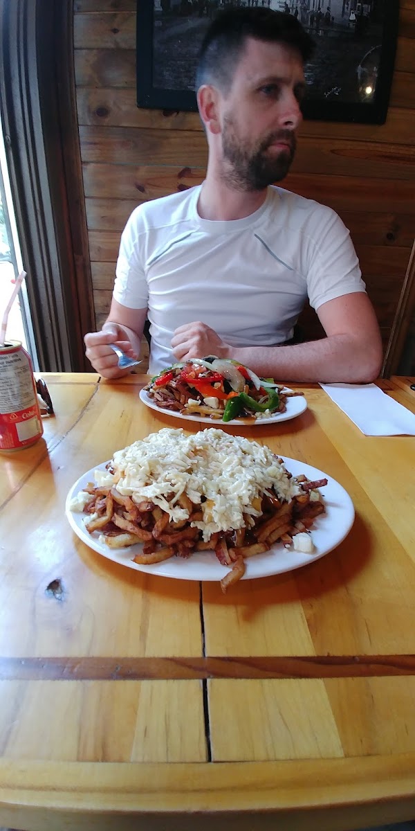 Came here with friends on the way up from Maine! I really appreciated how there was no one else in the restaurant at 3 pm on Sunday so we didn’t have to wait a long time! Food: we got the Le Snack and the Le Fontaine poutine medium sized and the amount of food was perfect for 4 not too hungry girls! We really liked how the fries were seasoned since it wasn’t too heavy even though there was lots of cheese. Service: The waiters here were nice and spoke English and French! Food came out quickly and you can watch them make your food. Ambiance: Super casual place. Overall, super quick and relatively cheap poutine that’s good for a quick stop!