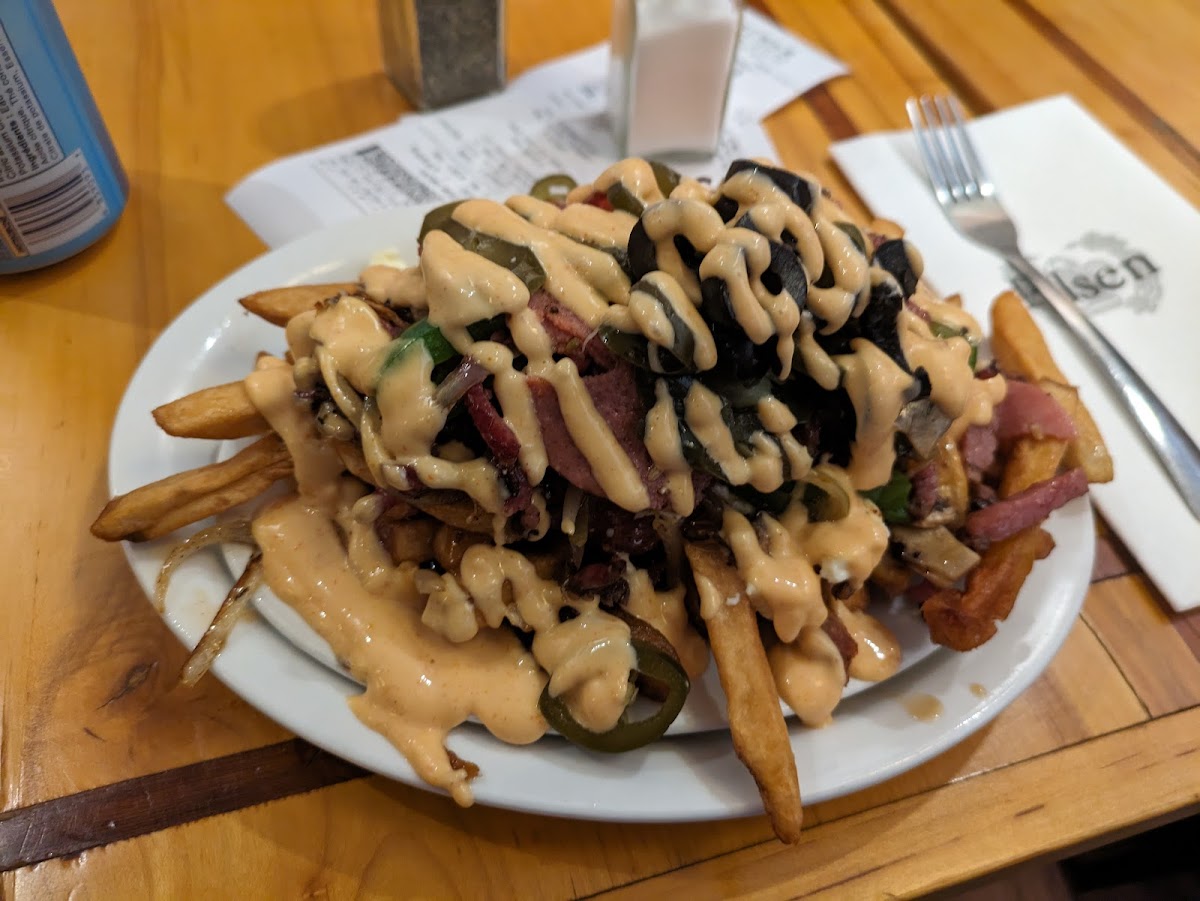 A must for the poutine lover. Close to 100 variations if you can think it up it is probably on the menu. There is parking around back or if you can there is direct street parking. The staff is friendly, our waitress was fluent in english and helped us navigate the large selection. The menu is in french but with a little thought you can get a good guess if what you are ordering. I would highly recommend this to anyone.